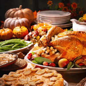 The kitchen’s humming, the table’s set, and the scent of roasted turkey and cinnamon fills the air. Mo’s stationed himself…
